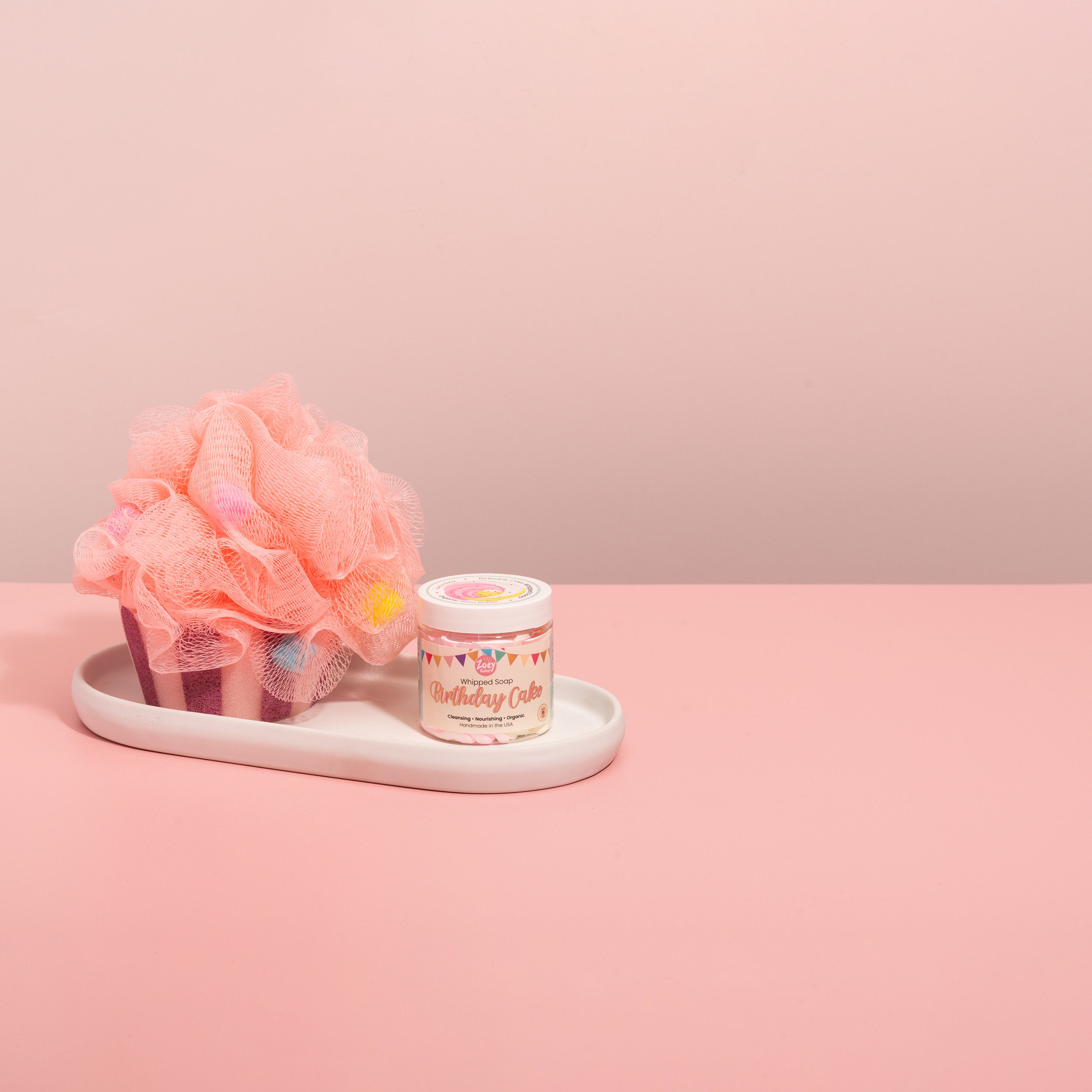 • Birthday Cake Whipped Soap (4 oz): A fluffy, birthday cake-scented whipped soap that suds into creamy bubbles, leaving skin soft and smelling deliciously sweet.